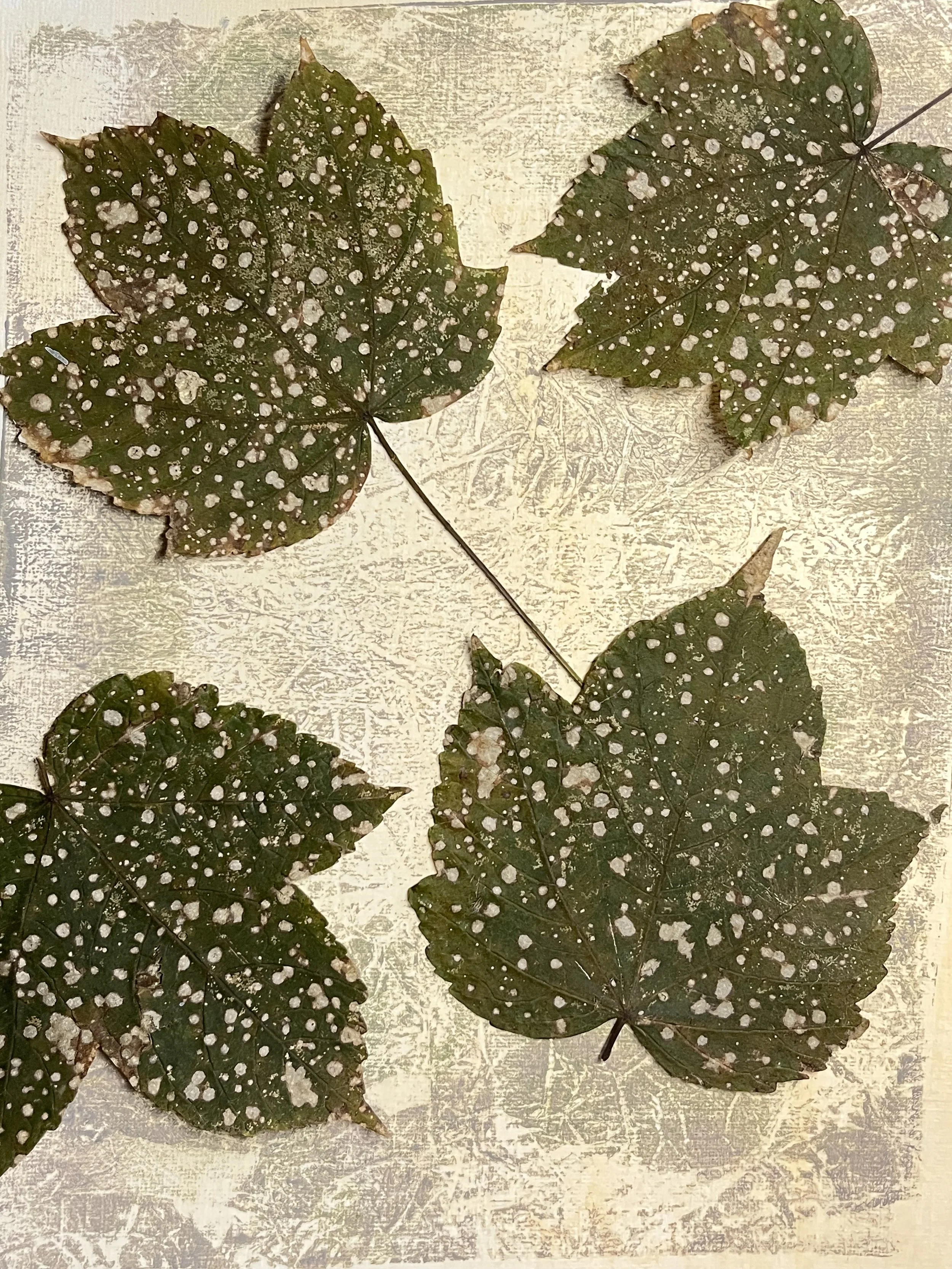 It’s not just the colour of the leaves that inspire me, but the texture and the marks left by insect life or the process of decomposer before the leaves are pressed. These unusual textures and markings make each leaf unique. For me the leaves don’t have to be perfect specimens as these unusual markings give insight into the way in which nature works.